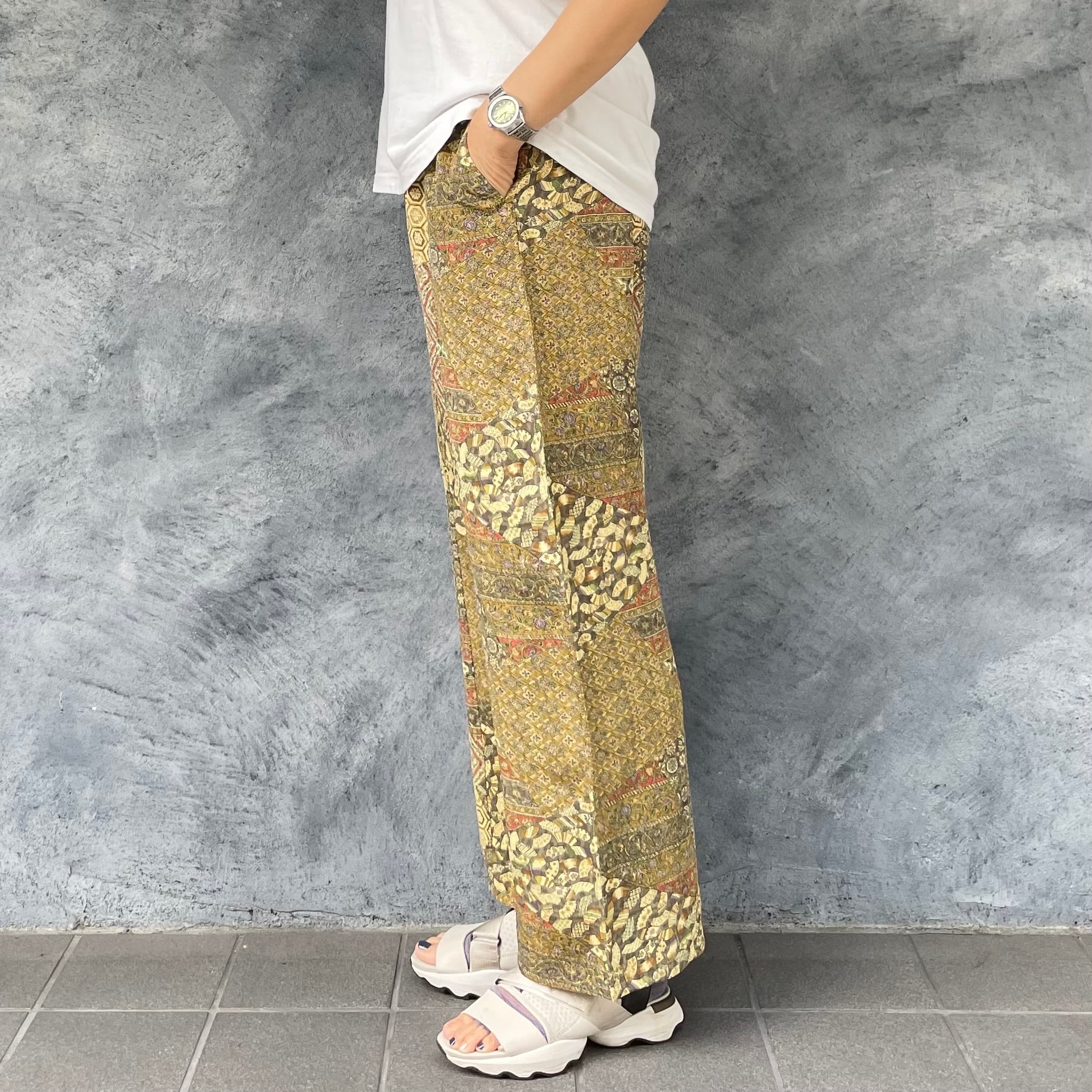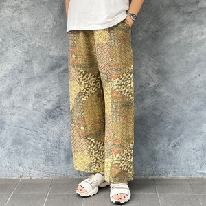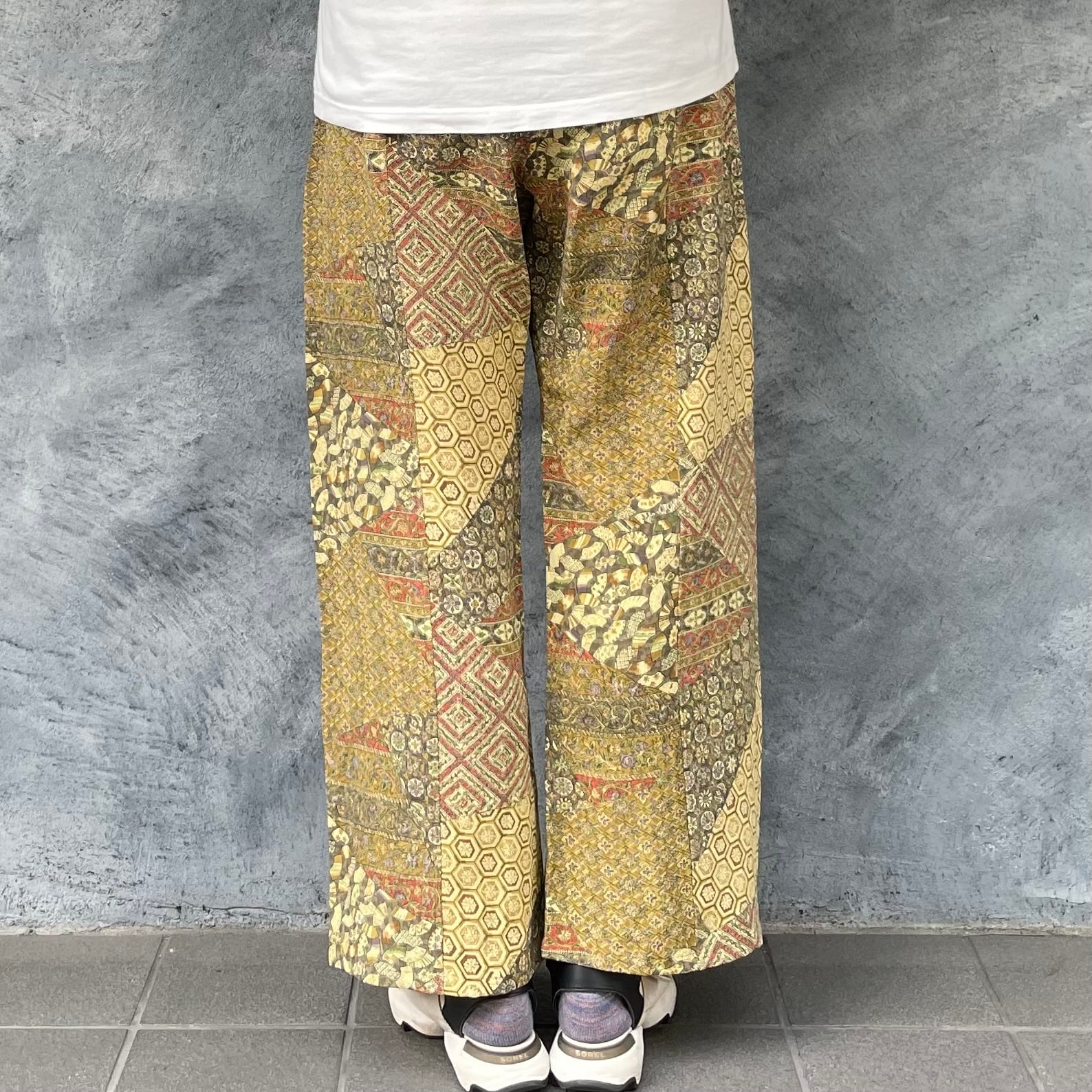 着物リメイクワイドパンツ - kimono elastic waist pants