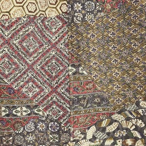 古着の小紋の着物をワイドパンツに仕立て直し致しました。少し厚手のベージュ地にベージュ・茶、黄土色系の更紗紋様。サンダルでも、革靴でも、パンプスでも、カジュアルからよそ行きまでスタイリング次第で幅広く着用いただけます。