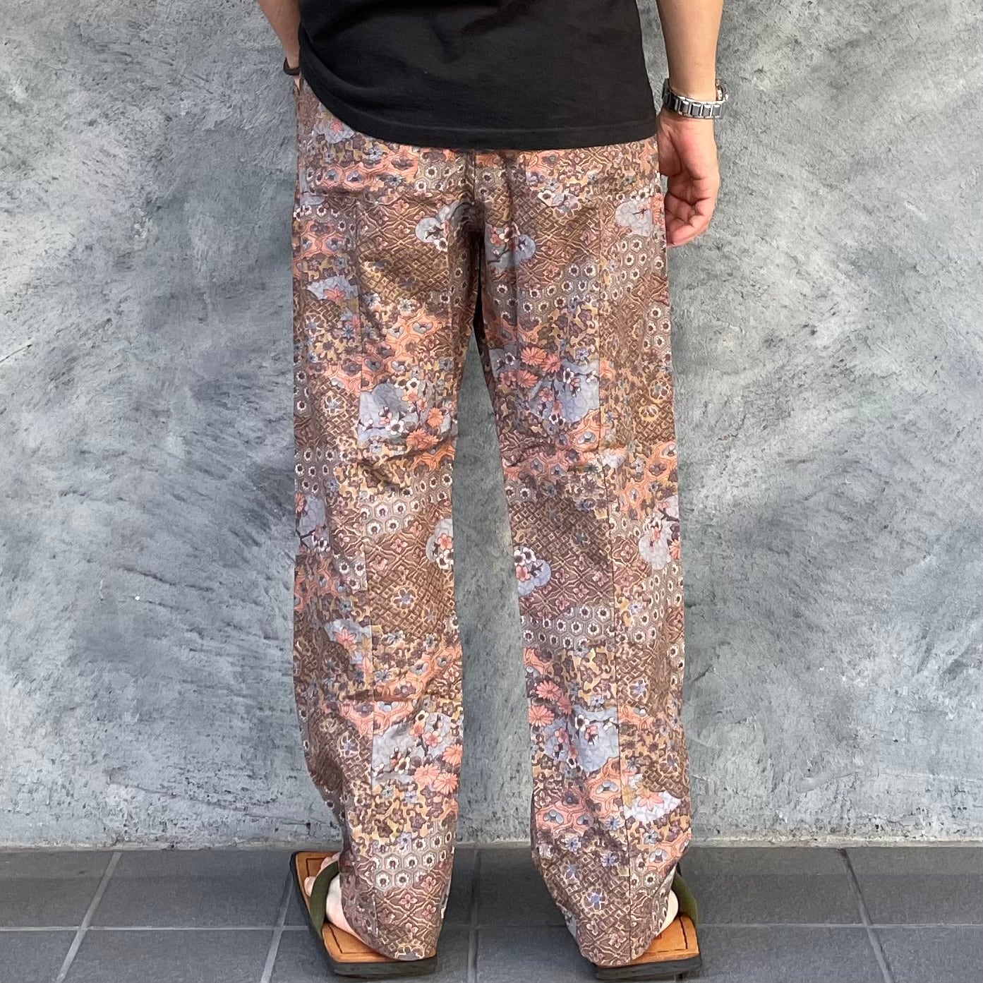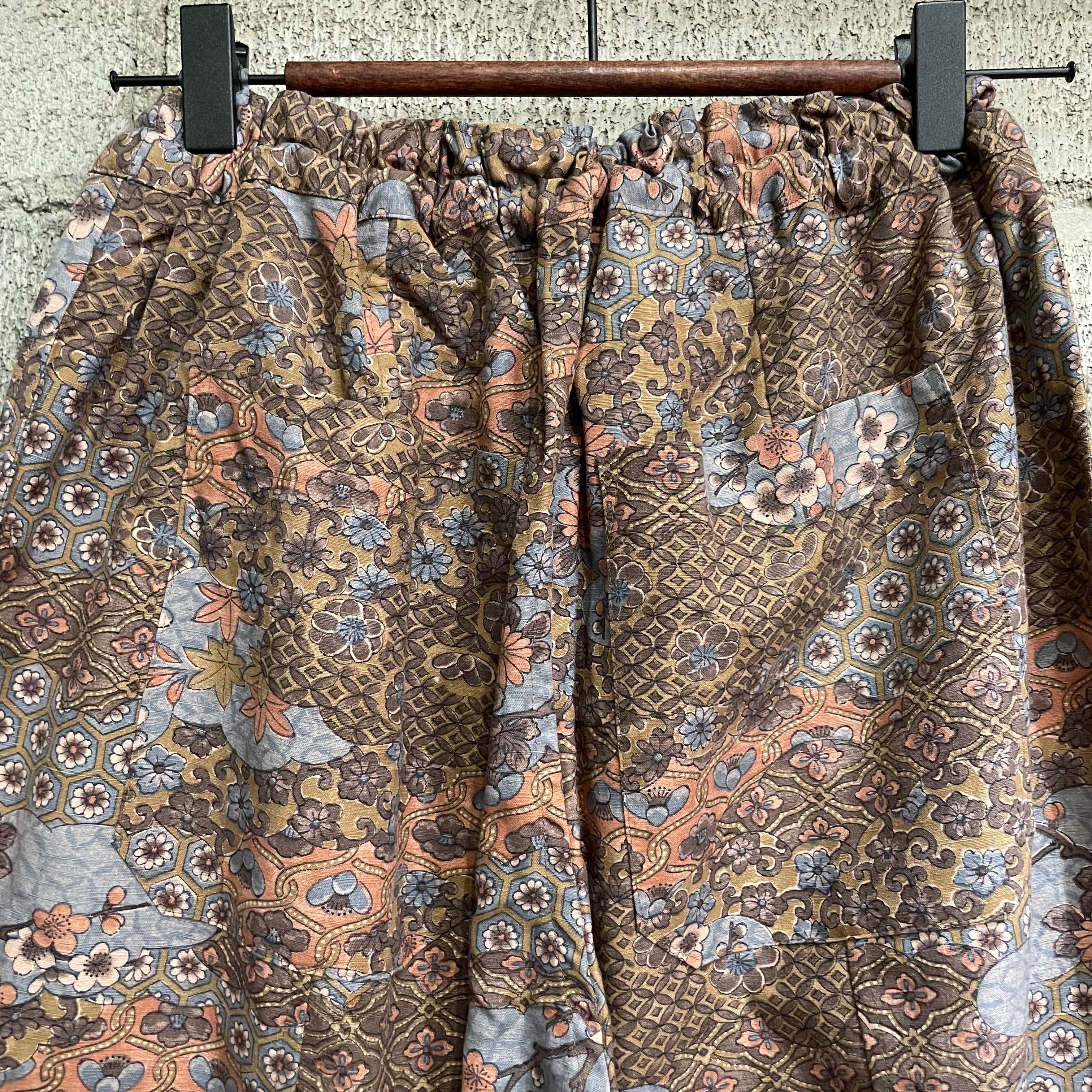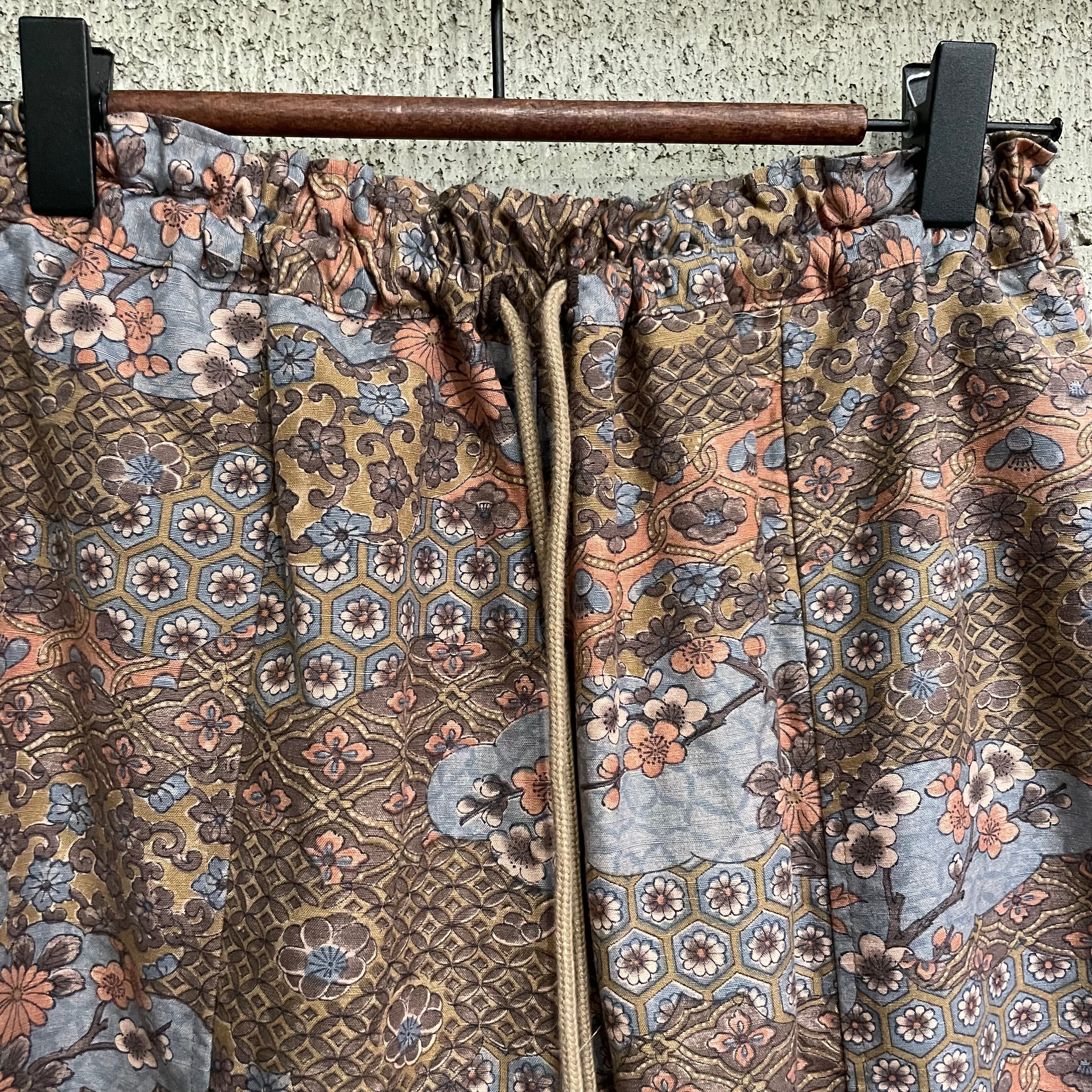 着物リメイクパンツ - kimono elastic waist pants