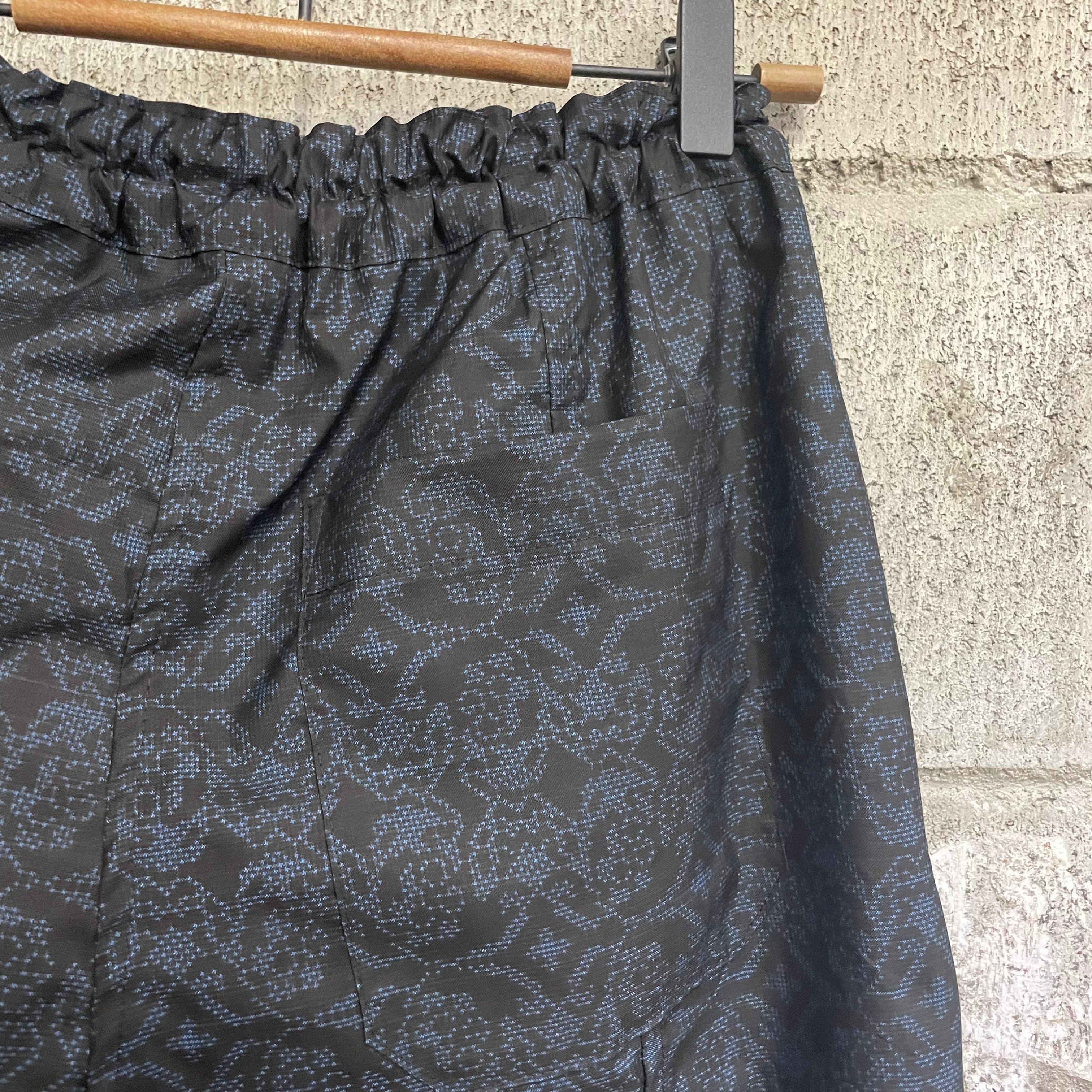 古着の大島紬の着物をイージーパンツに仕立て直し致しました。サンダルでも、革靴でも、カジュアルからよそ行きまでスタイリング次第で幅広く着用いただけます。