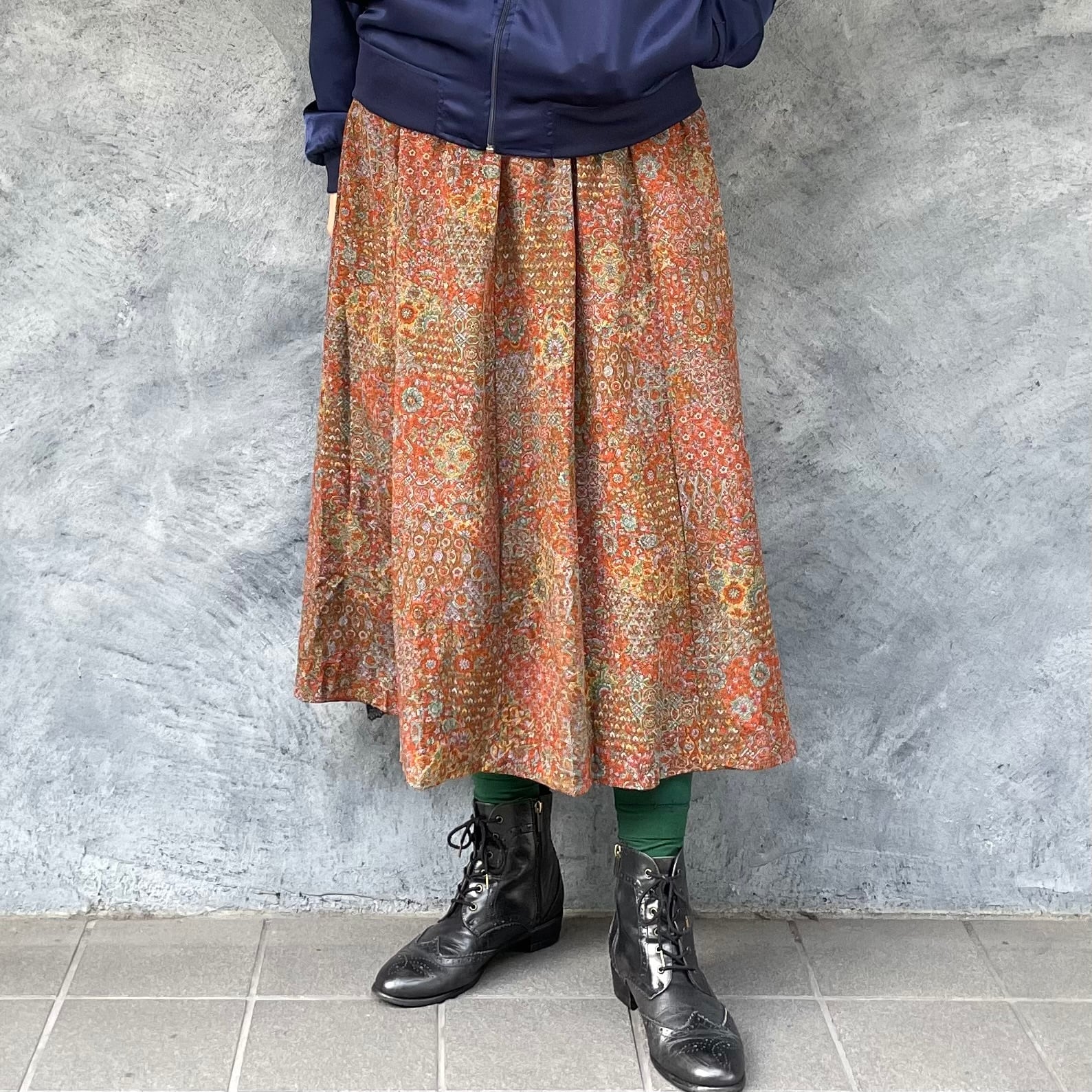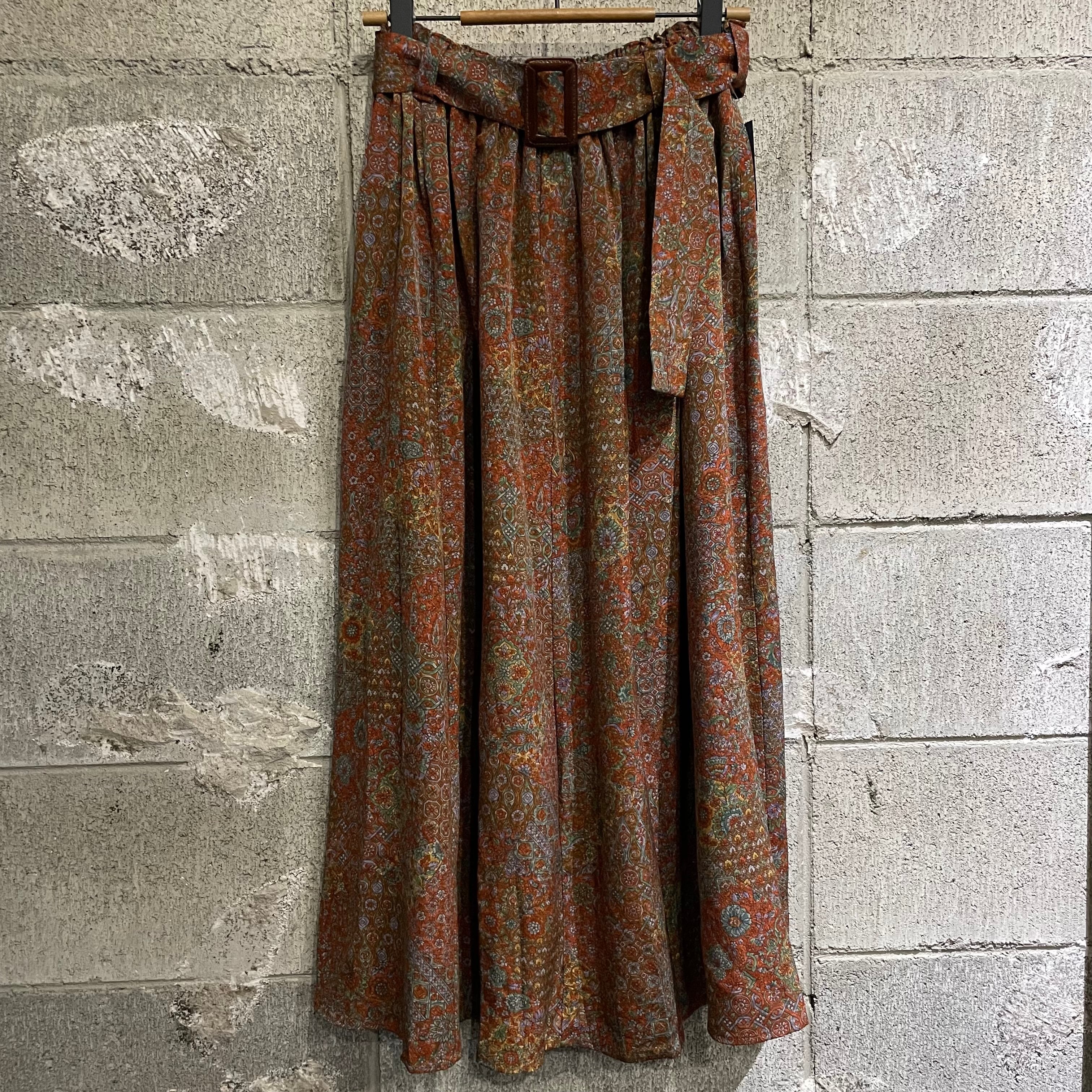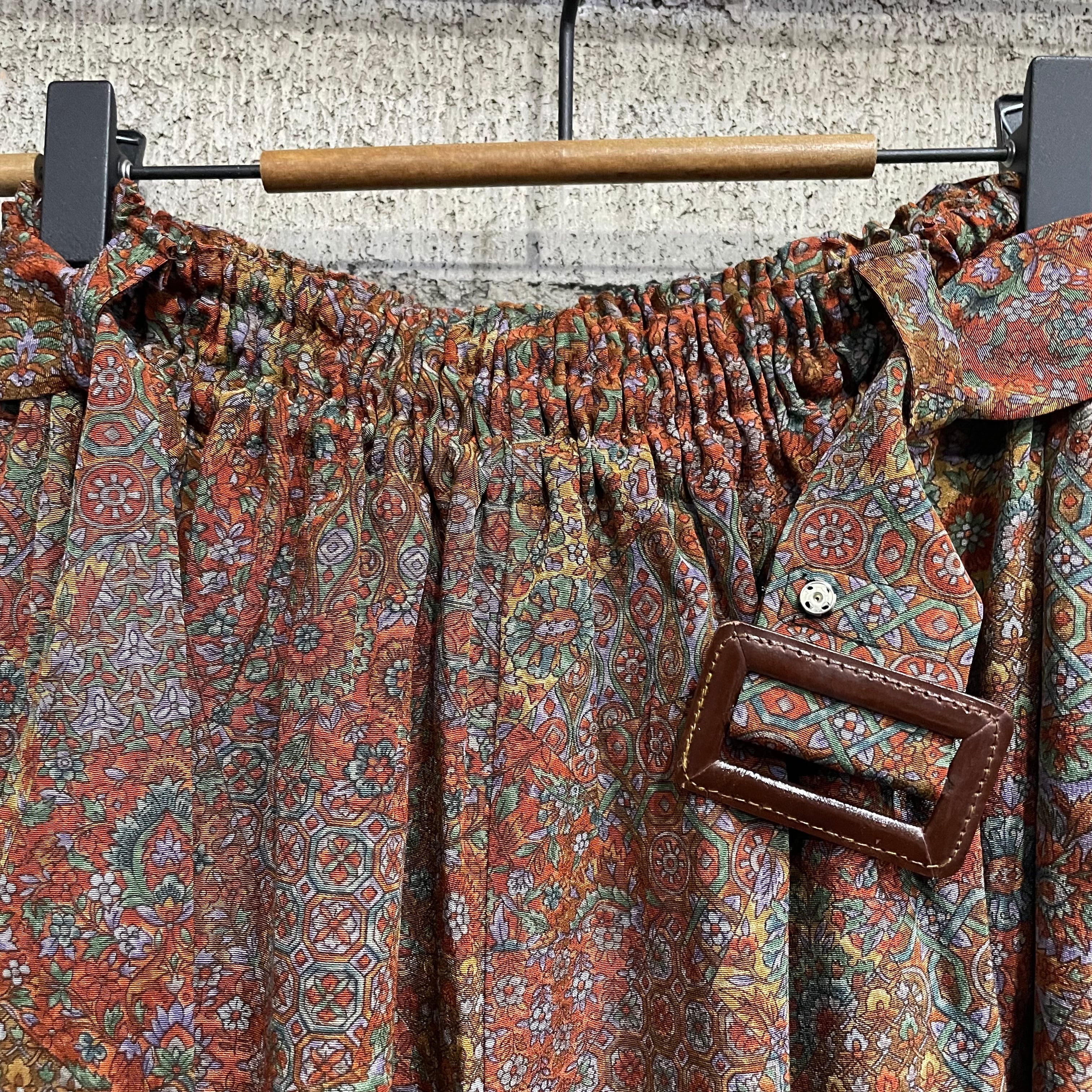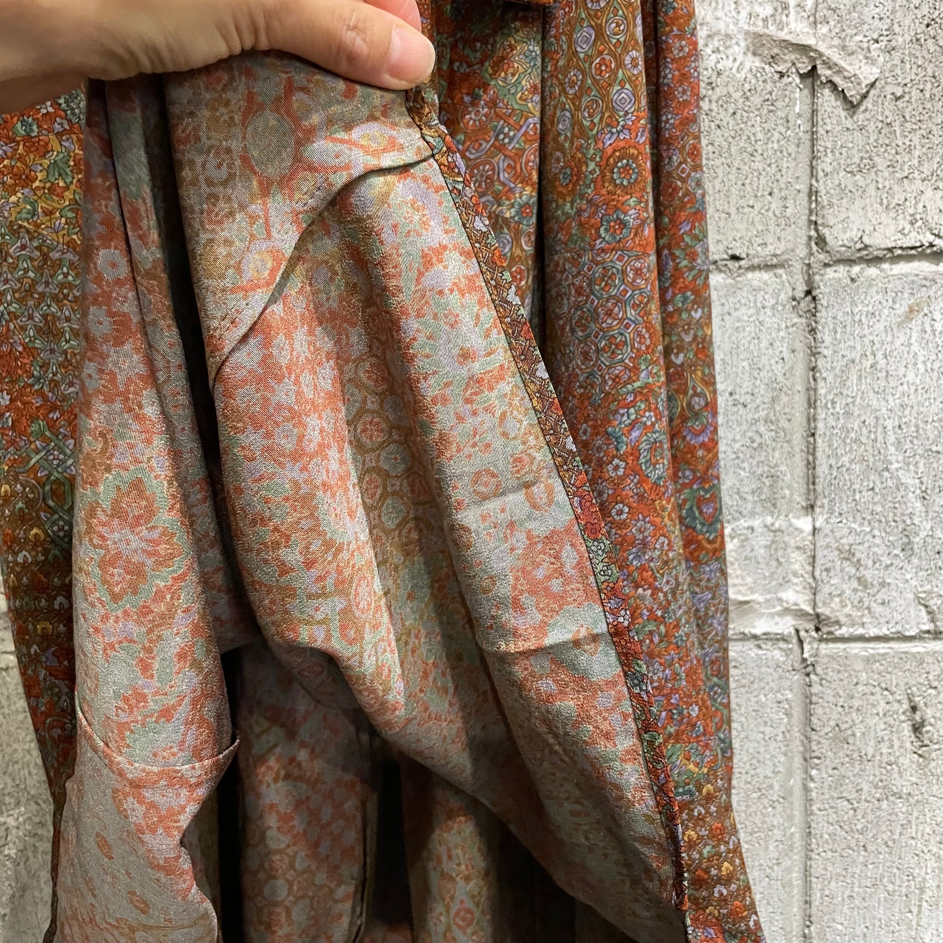 着物リメイクギャザーロングスカート - kimono elastic waist skirt